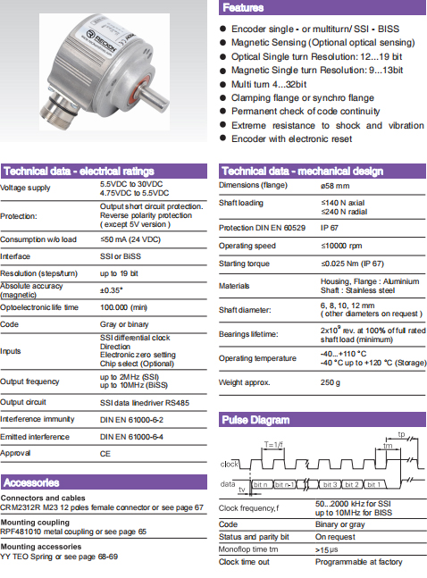 空載電流:≤ 50mA(24VDC)   接口:SSI或 BiSS